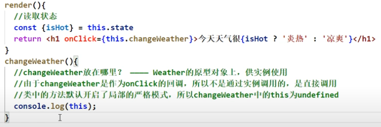 现在的问题是当h1标签被click,调用回调函数changeWeather时,函数里的this为undefined,那该怎么办呢?