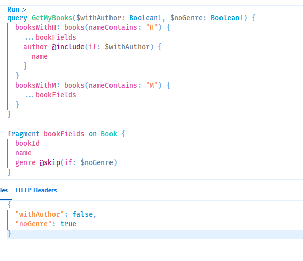@include(if: Boolean)– Include the field if argument istrue@skip(if: Boolean)– Skip the field if argument is true
