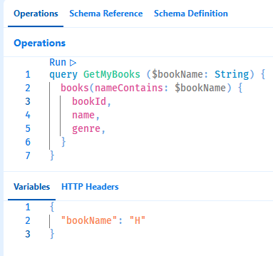 }Each field has a data type, indicating the type of data it can store. GraphQL specifications contain built-in Scalar types. If there’s an exclamation mark at the end, meaning this field cannot be null. If you try to create a new Book object using GraphQL and don’t put values in all the fields, you’ll get an error.
